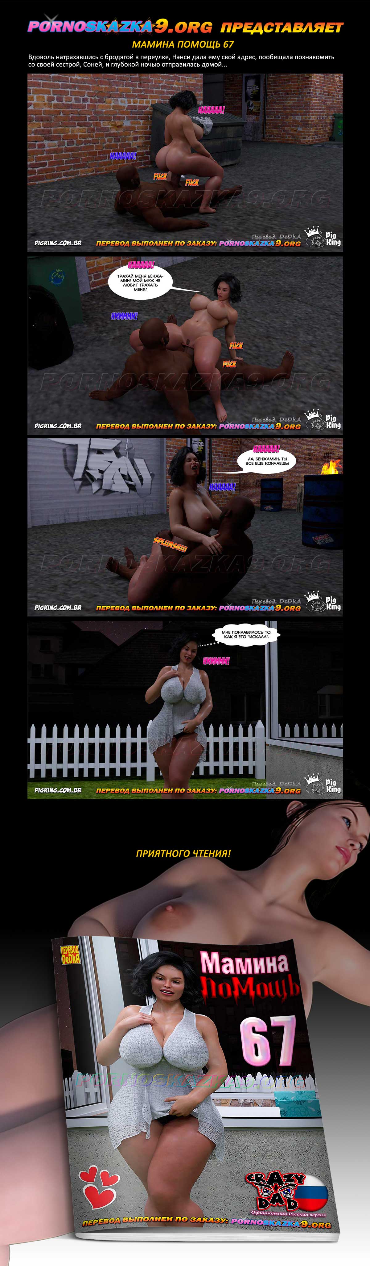 Порно комикс Мамина помощь. Часть 67. Вдоволь натрахавшись с бродягой в переулке, Нэнси дала ему свой адрес, пообещала познакомить со своей сестрой, Соней, и глубокой ночью отправилась домой…